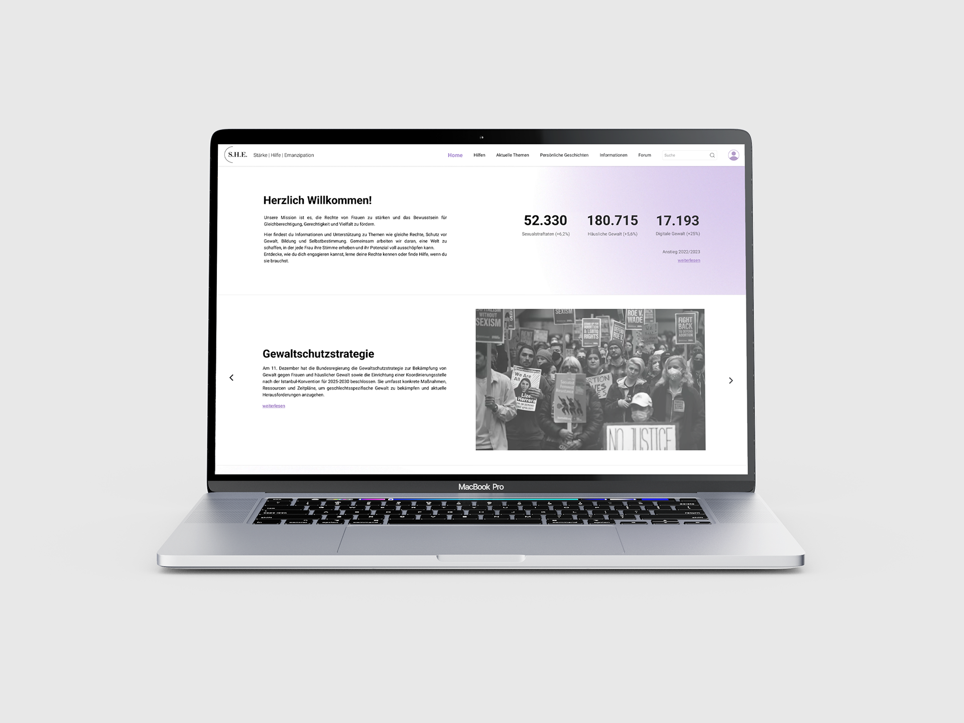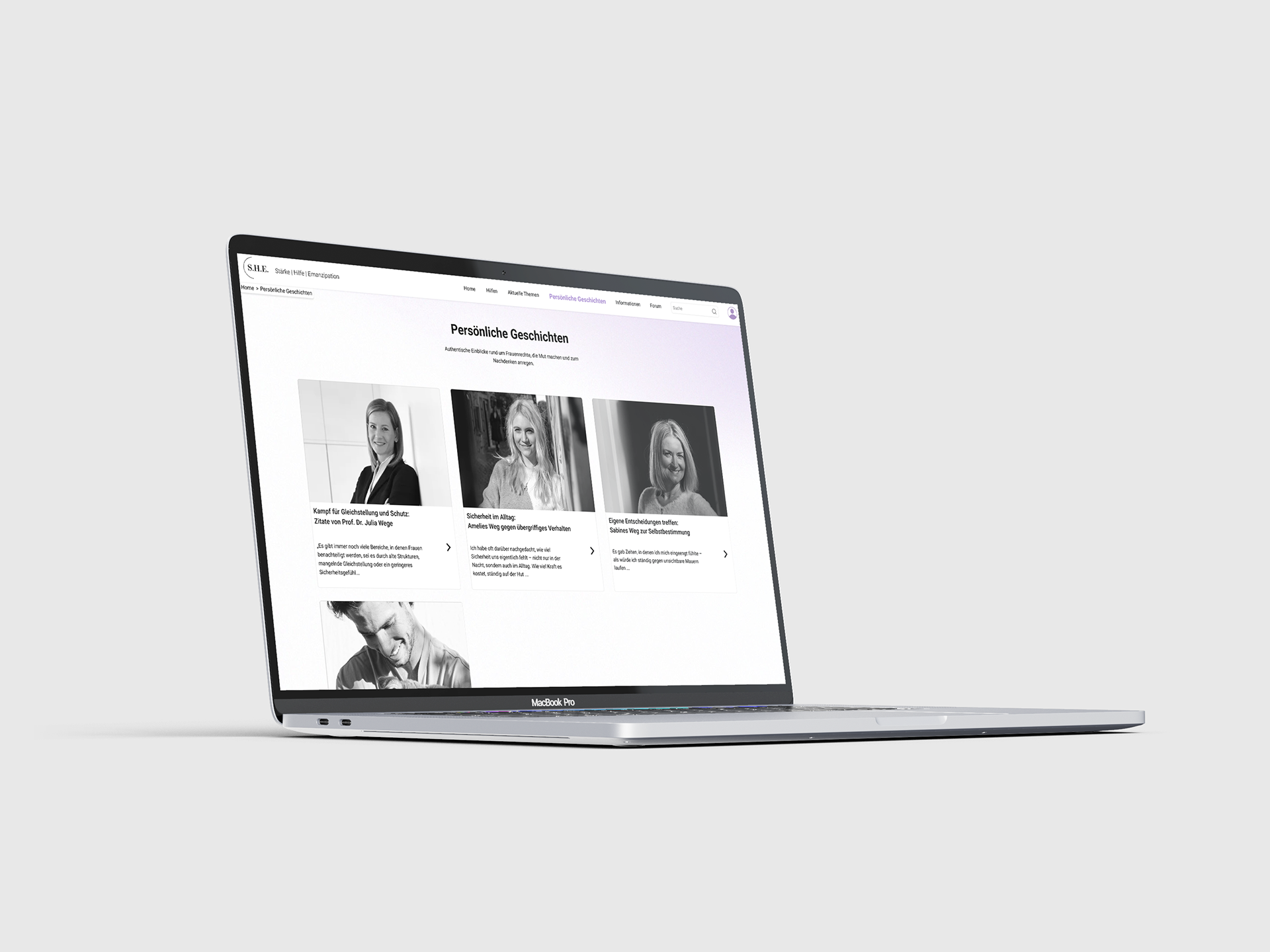 As a group project, we designed a website prototype called S.H.E, aimed at empowering and informing women. The platform provides resources and support for those affected by violence, while also raising awareness and encouraging connection between women. Our goal was to create a safe, informative, and uplifting digital space through thoughtful UX and clean, modern design.