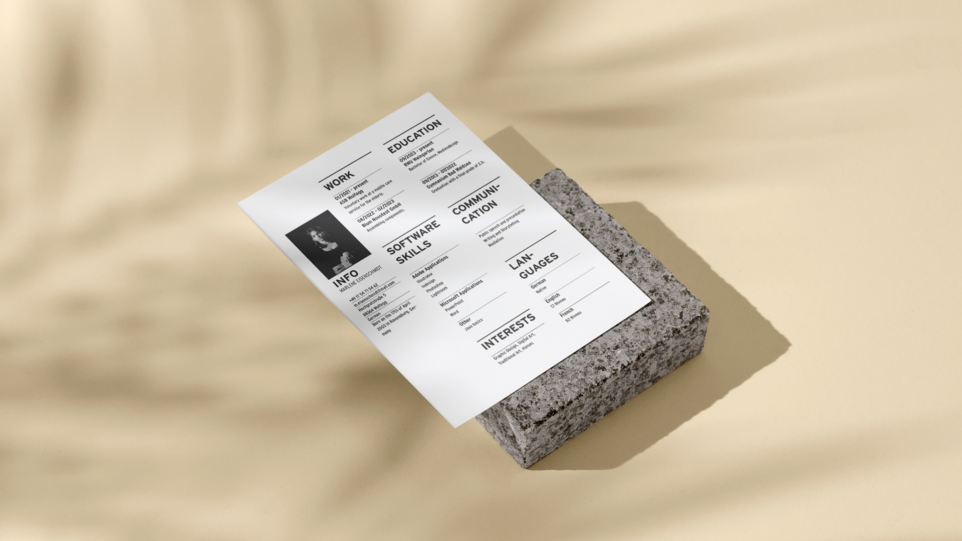During my first semester, I worked on a series of personal branding projects, including business cards, a CV, and various logo designs.
